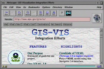 The "GIS-VIS" Web site was also designed as a teaching tool. To support technology transfer activities, we created a slide show describing how geographic visualization supports moving from "flat" maps to 3-D displays and animations. The slide show functions were developed with a Java applet. Due to security concerns, Java is presently not in use on the EPA's public domain Web server. We also explored how to combine GIS-SciVis integration with the recently developed Virtual Reality Modeling Language (VRML).