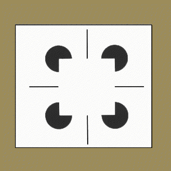 | In the case of the subjective contour we use circumstantial evidence (e.g. gaps in the black circles) to deduce the presence of an occluding object; once this decision has been made, the interpretation of intensities, distances, etc., are changed to make the complete interpretation a consistent one. | Figure Subjective Contours: the white square that appears to be occluding