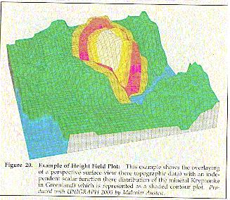 | An example of a height-field plot produced in IRIS Explorer. | ![]() |