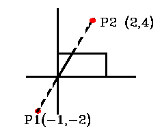 | compute new endpoints t1 = 1 / 3 x1' = x1 + dx . t1 = -1 + (3 . 1 / 3) = 0 y1' = y1 + dy . t1 = -2 + (6 . 1 / 3) = 0 t2 = 1 / 2 x2' = x1 + dx . t2 = -1 + (3 . 1 / 2) = 1 / 2 y2' = y1 + dy . t2 = -1 + (6 . 1 / 2) = 1 |